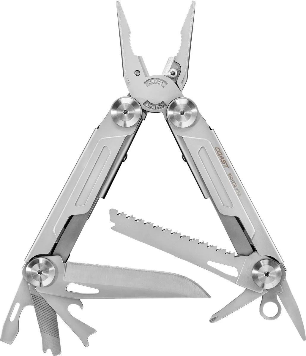 COAST MT400 är ett genomgående robust multiverktyg i rostfritt stål med hela 13 funktioner, slip-joint låsmekanism och praktisk upphängning – utvecklat för hantverk, service och friluftsliv.
